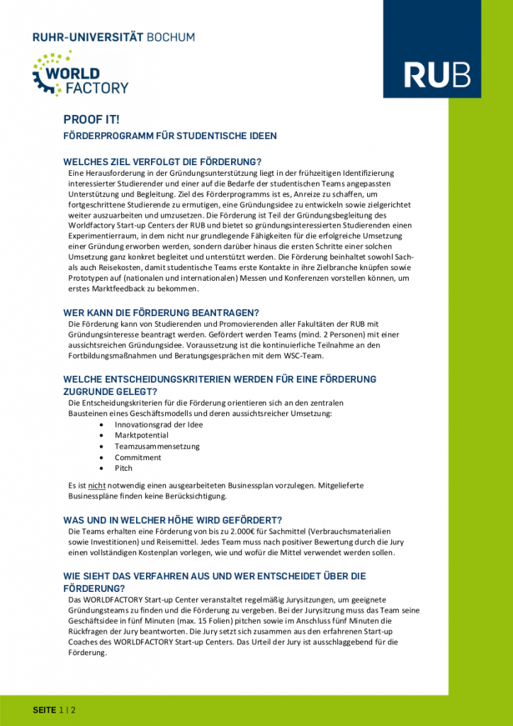 Alle Informationen zum Förderprogramm Proof it! findet Ihr hier: https://www.ruhr-uni-bochum.de
