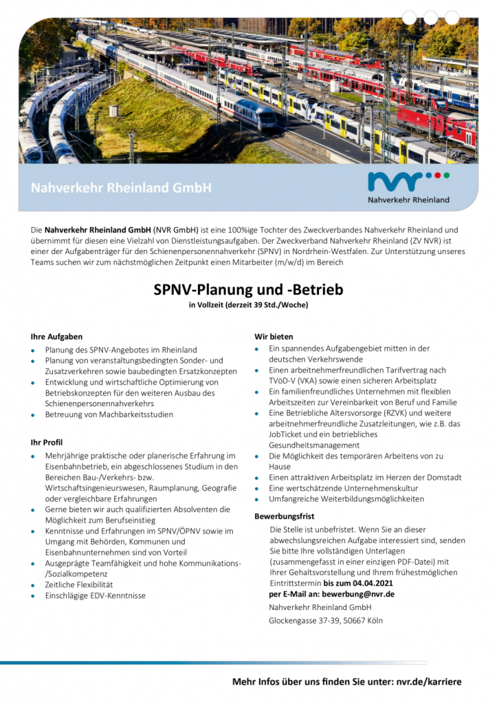 Für Alumni/Absolventen: Stellenausschreibung SPNV-Planung und -Betrieb