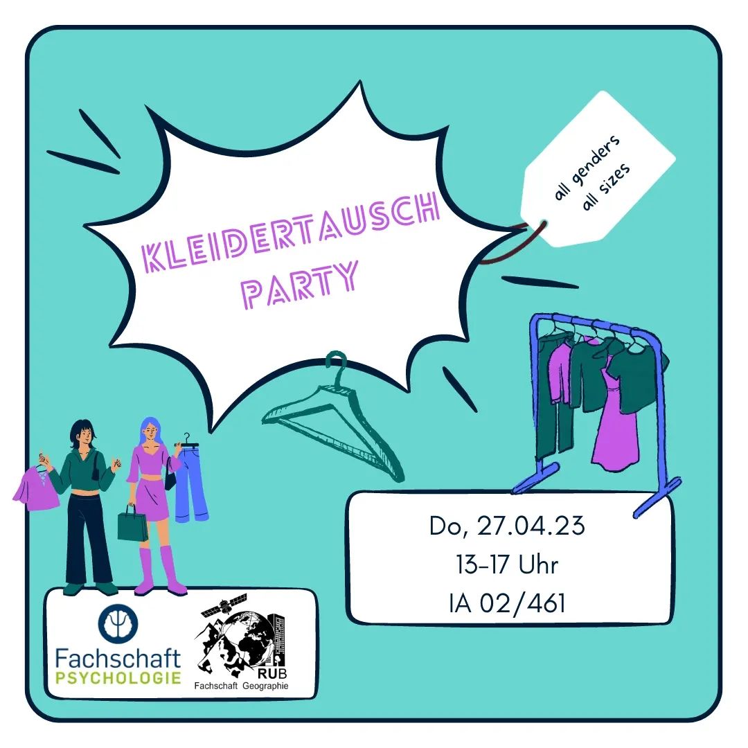 Zusammen mit dem Fachschaftsrat Psychologie haben wir da mal was vorbereitet… am Donnerstag, den 27.04., habt ihr von 13-17 Uhr die Möglichkeit in IA 02/461 mit euren Mitstudierenden Kleidung zu tauschen! Und es gibt sogar einen Kuchenbasar! 🎉👕🧁