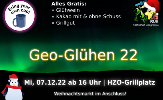 Es ist wieder soweit – die Fachschaft trifft sich am 7.12. zum gemütlichen Jahresausklang! Am 07.12.2022 laden wir alle Studis der Geographie ab 16 Uhr zum HZO-Grillplatz ein. Es gibt gratis Glühwein, veganen Kakao und wir schmeißen wie immer den Grill an. Bringt bitte eine eigene Tasse, gute Laune und […]